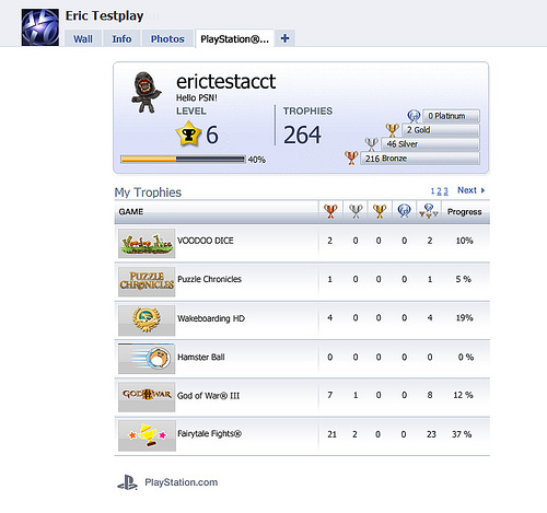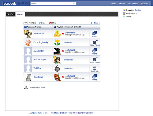 Adding to the ability to post trophy and PlayStation Store activity onto your Facebook news feed which was ushered in with firmware 3.10, the PS3’s Facebook integration is taking the next step in socializing the PSN experience. Sony is releasing a PlayStation Network Facebook application that gives users the ability to post their PlayStation Network profile, along with a full trophy card, on Facebook. Find out which of your Facebook BFFs are on the PlayStation Network and send them an invite using this new application. Once your Facebook friends are added to your PSN friends list, you can check to see if they’re online.